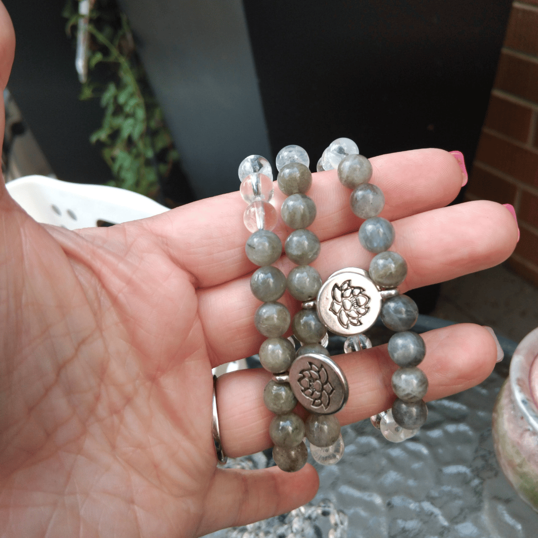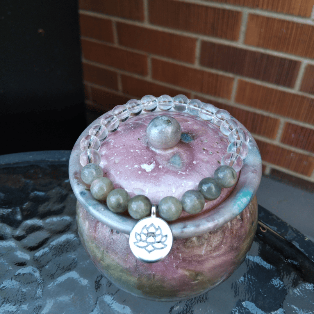 The bracelet has labradorite which is known to assist in your energetic protection and clearing negative energy and thinking patterns