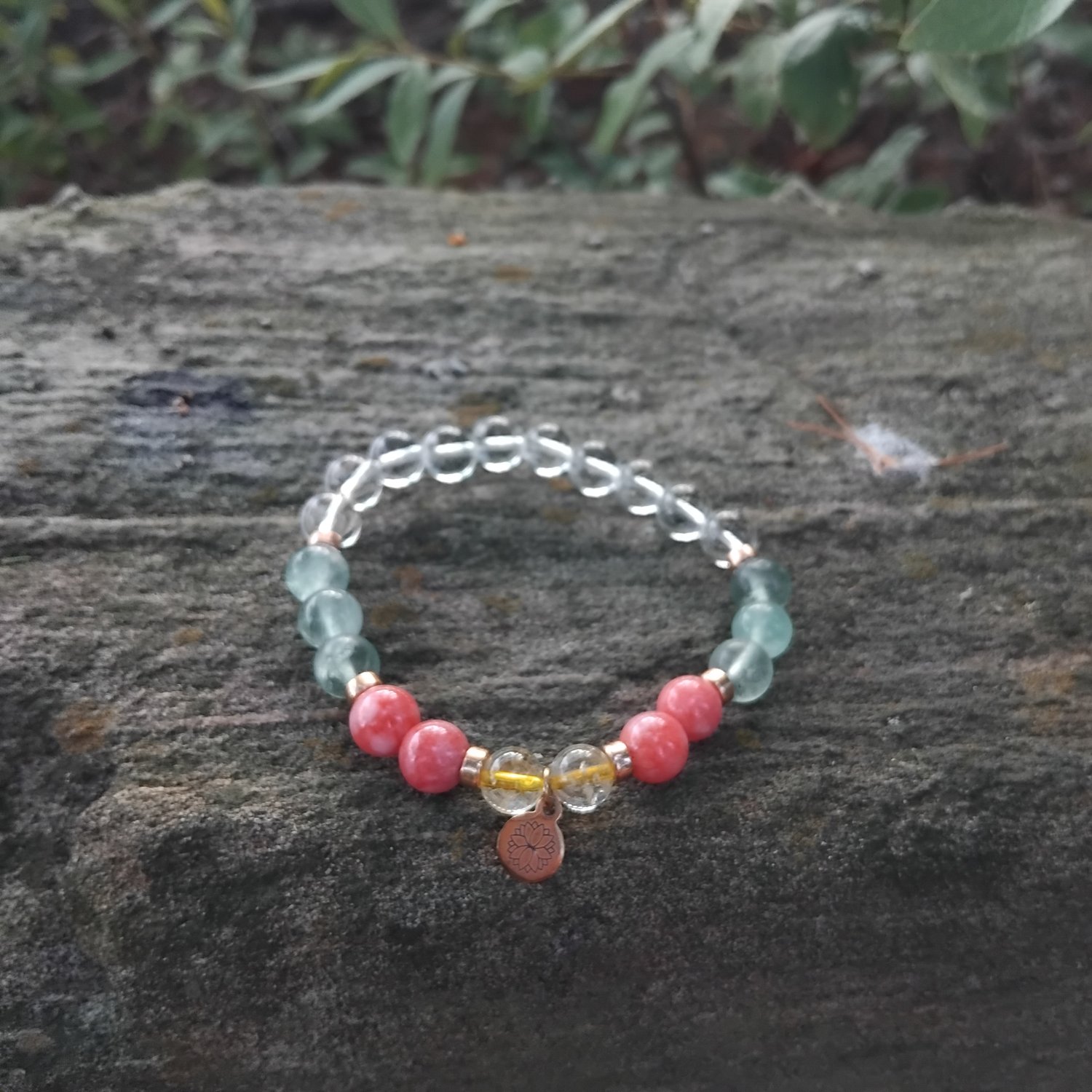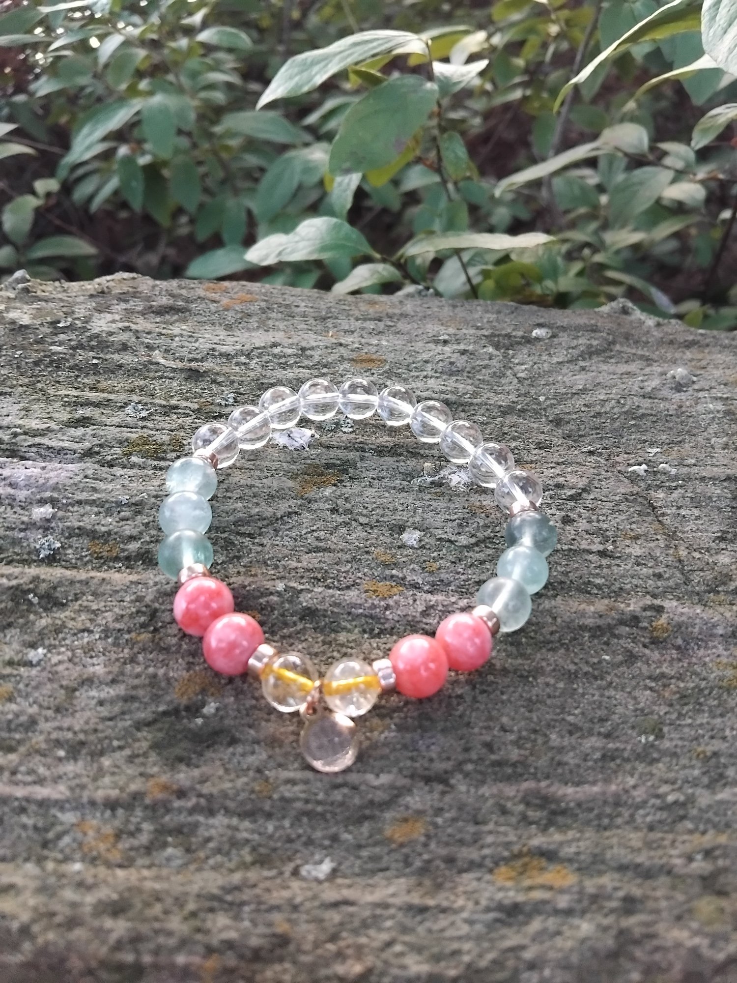 green fluorite, strawberry quartz and citrine